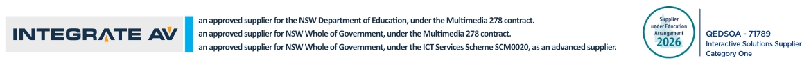 An Approved supplier for the NSW Department of Education, under the Multimedia Solutions State Contract. | An Approved/prequalified supplier for the NSW Government, under the Multimedia Solutions State Contract. | An approved supplier for the Queensland Department of Education, under Standing Offer QEDSOA-71789. | An approved/prequalified advance supplier for the NSW Government, under the Contract Scheme – SCM0020 ICT Services. | Hardware Marketplace approved supplier.